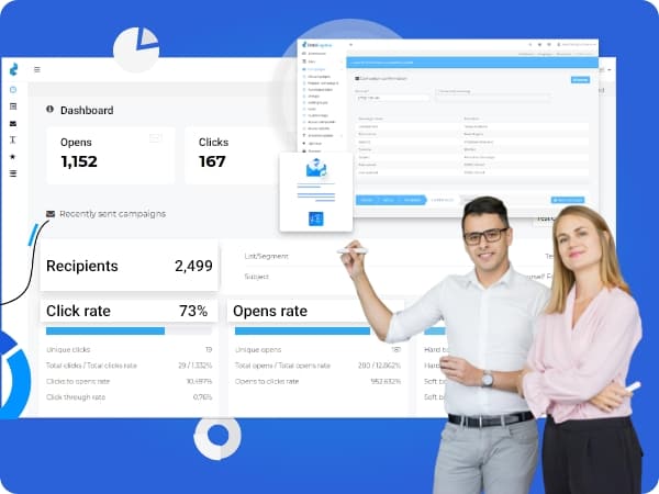 Our all-in-one dashboard refers to the visual interface that provides a complete overview of every single metric, data and option that you might need in relation to your email marketing campaigns. It is designed to present important information in a compact and easy-to-understand form, allowing you to monitor the performance and effectiveness of your email marketing efforts at a glance.